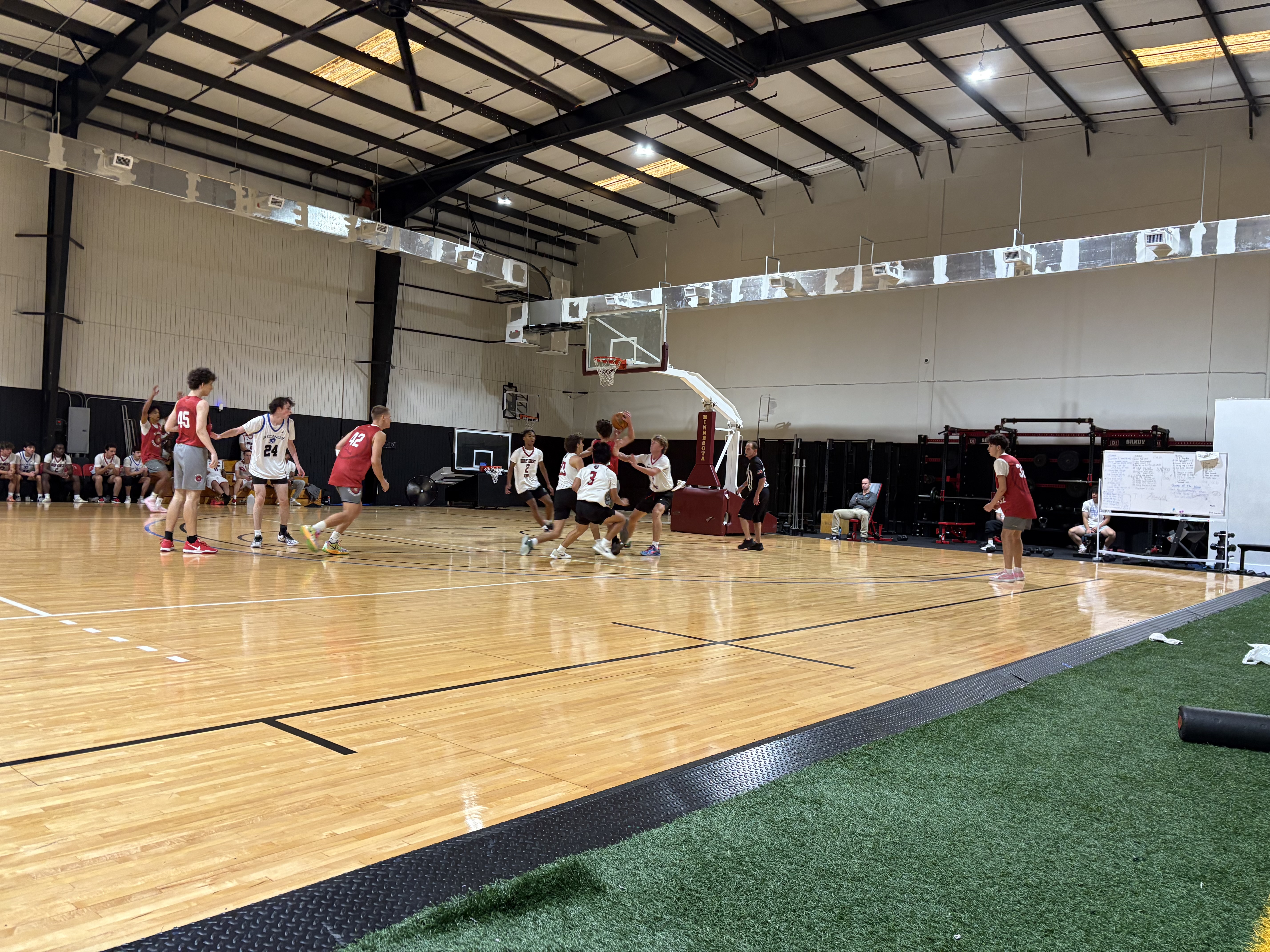 Live game situations daily — full-court 5-on-5, king of the court, and situational sets that simulate pressure moments.